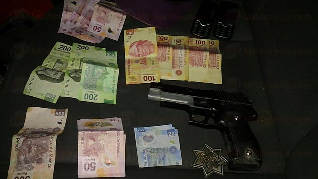 Cuando los uniformados interceptaron al sujeto y le quitaron el arma, se percataron de que esta era de plástico y que traía dos mil 380 pesos, presuntamente adquiridos del robo.