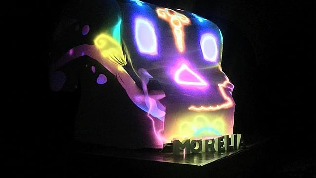 Morelia, Michoacán (MiMorelia.com).- En el marco de la celebración de Noche de Muertos en la ciudad, el Ayuntamiento de Morelia a través de su Secretaría de Turismo invita a disfrutar del espectáculo de videomapping sobre un cráneo monumental el cual fue instalado en el patio central de Palacio Municipal y estará vigente hasta el 10 de noviembre con un horario de 19:00 a 21:00 horas.