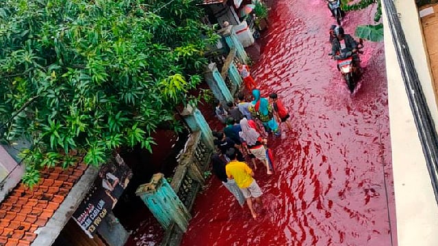 Indonesia (MiMorelia.com).- Una aldea ubicada en Indonesia se inundó debido a las intensas lluvias que cayeron en la región en los últimos días, sin embargo, el agua de las calles se tiñó de color rojo, pero, ¿cuál fue la razón?, aquí te lo decimos.