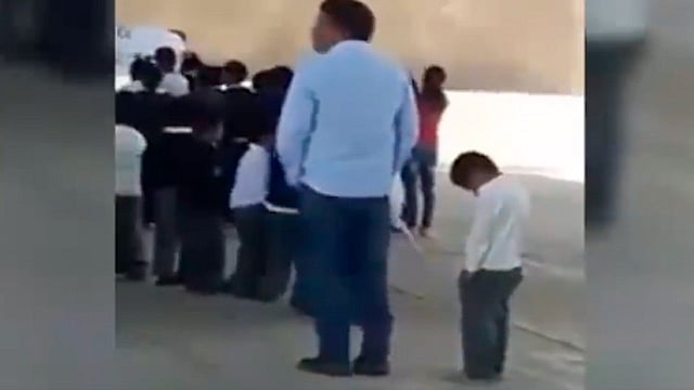 Felipe Ángeles, Puebla (MiMorelia.com/Redacción).- Un maestro de primaria amarró a su alumno con un lazo por motivos que se desconocen, lo anterior según fue difundido en un video que circula en redes sociales.