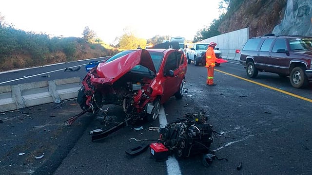 El accidente se registró en la mencionada carretera en el kilómetro 69 donde los primeros reportes señalan dos personas lesionadas y una persona prensada en el lugar.