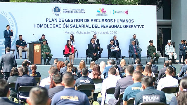 Morelia, Michoacán (MiMorelia.com).- Diputadas y diputados de la LXXIV legislatura se dieron cita este día en las instalaciones de la Fiscalía General de Justicia del Estado de Michoacán para presenciar el arranque del "Plan de Gestión de Recursos Humanos Homologación Salarial del Personal Operativo".