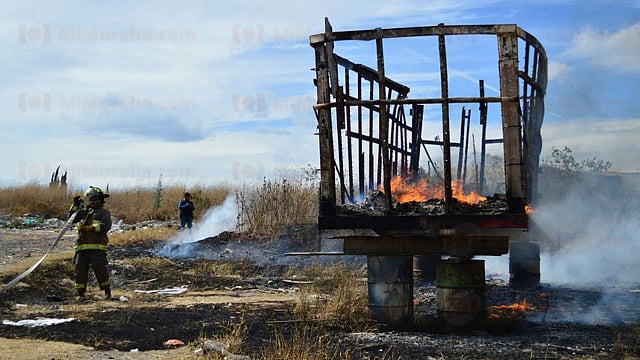 Morelia, Michoacán (MiMorelia.com/RED 113).- La caja abandonada de un camión tipo torton terminó completamente calcinada a raíz de un incendio de pastizal, así lo refirieron las autoridades policiales y las corporaciones de auxilio que atendieron la emergencia. Únicamente hubo daños materiales.