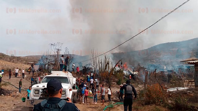 Morelia, Michoacán (MiMorelia.com).- Al menos siete casas de madera y lámina de cartón quedaron devastadas por un incendio que se registró la tarde de este lunes en la colonia irregular Paraíso Industrial, al oriente de Morelia, en las inmediaciones de Ciudad Industrial.