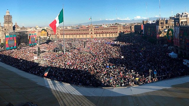 "Aquí comienza la primavera de México, es más bella está plaza hoy porque laten los corazones de miles de personas libres y de millones en el país que nos escuchan desde todos los ricnones, celebrando el inicio de una nueva era", dijo la presentadora de los músicos de Oaxaca.