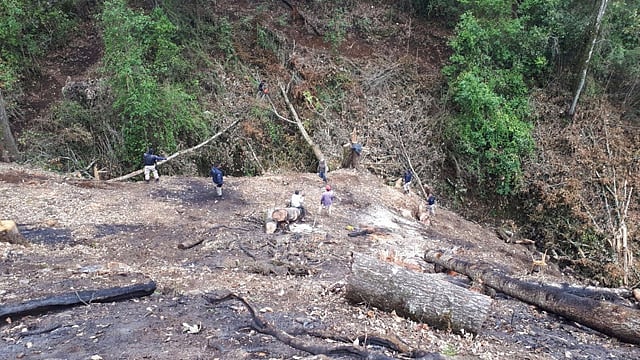 En una segunda inspección, en el paraje "La Gotera", en el municipio de Tingambato, donde también se registró un fuerte incendio hace unos días, se sorprendió a otro grupo de personas que derriban árboles y preparaban el terreno para hacer un cambio de uso de suelo.