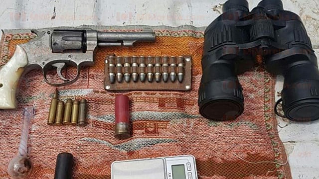 En los patrullajes se localizó a un sujeto identificado como Juan N. de 40 años que portaba una pistola marca Smith and Wesson, color gris metálico, con cachas color hueso, calibre 38 especial, además de 14 cartuchos para esa misma arma y uno para calibre .233 (para arma larga) y uno calibre 12.