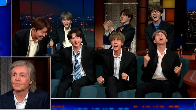 Stephen Colbert preguntó a McCartney si sabía que las megaestrellas de K-pop BTS, habían hecho su propio homenaje a los Beatles en The Late Show a principios de este año y que también cantaron "Hey Jude" cuando se les preguntó cuál era su canción favorita de la banda.