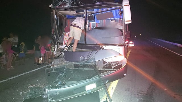 De acuerdo con datos obtenidos por este medio una unidad de transporte público federal de la marca Mercedes Benz color verde y modelo 1992 se impactó contra la caja que remolcaba un tractocamión Sterling, blanco, modelo 2002, con placas del servicio federal de carga 14AA2V a la altura del kilómetro 175.