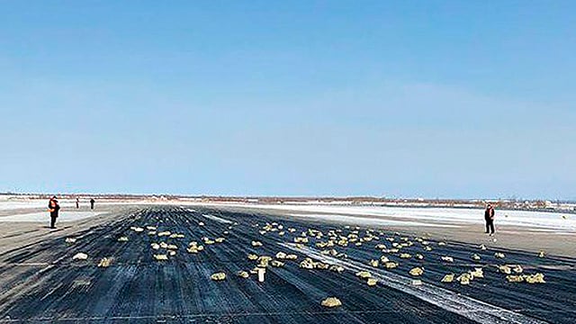 Rusia (MiMorelia.com/Redacción).- Un avión que trasladaba lingotes de oro esparció por tierra varias toneladas del metal precioso, luego de que una compuerta del mismo se desprendiera mientras despegaba.