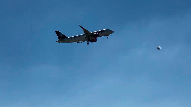En el video se puede apreciar que mientras un avión despega de la pista de aterrizaje un objeto cruza el cielo a gran velocidad en dirección contraria a la de la aeronave.