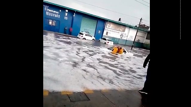 A través de un video compartido en redes sociales se puede ver cuando los jóvenes, uno identificado como trabajador de Uber Eats y otro como despachador de una gasolinera, se acercan a ayudar al hombre quien se encuentra atrapado en el agua con granizo.