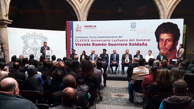 Morelia, Michoacán (MiMorelia.com).- En la ceremonia por el CLXXXIX Aniversario luctuoso del general Vicente Ramón Guerrero Saldaña, el orador oficial, Carlos Reyes Reyes, hizo un llamado a honrar el legado del prócer con el compromiso de no atacar a los luchadores sociales, sino más bien de apoyarlos.