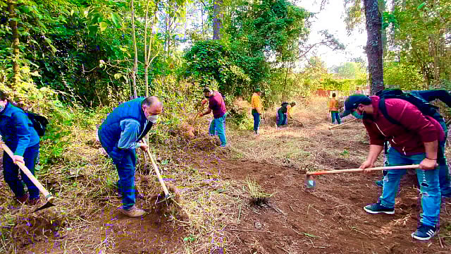 Lo anterior durante los trabajos de rehabilitación de brechas cortafuego desarrollados esta mañana en el área de montaña del Parque Nacional, en donde se recibió al destacado escultor uruapense Javier Marín, quien dio cuenta de la ardua labor para cuidar nuestra fuente de vida, siendo esta zona uno de los principales pulmones de Uruapan y de captación de agua para nuestro icónico río Cupatitzio.
