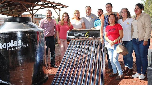 Se trata de paquetes de cemento, calentadores solares de 12 tubos, varilla de 3/8, tinacos y lámina galvanizada calibre 32, que son proporcionados a bajo costo por el gobierno que preside Víctor Manuel Manríquez González.
