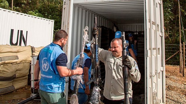 La Misión de la Organización de las Naciones Unidas (ONU) en Colombia ha almacenado en sus contenedores de armas en las 26 Zonas y Puntos Veredales de Normalización de dichas armas.