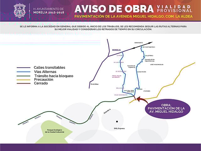 El encargado de la ejecución y supervisión de la obra pública en el municipio, recordó que para facilitar el tránsito, la Policía de Morelia auxilia en el flujo vehicular, en tanto que previamente se acordó con el transporte público para apoyar el desplazamiento de los usuarios.
