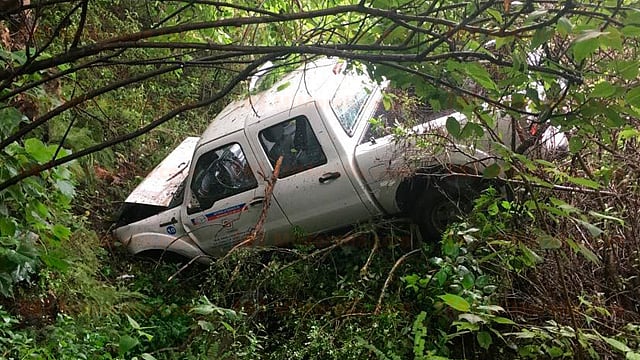 Churintzio, Michoacán (MiMorelia.com/RED 113).- Una camioneta se salió del camino y cayó a un desnivel, misma que terminó entre la vegetación, a raíz del percance su conductor sufrió lesiones que por fortuna no ponen en riesgo su vida, según lo mencionaron los socorristas que lo atendieron.