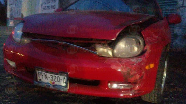 Uno de los carros siniestrados es un Dodge Neón y el otro es una furgoneta Ford Escape, ambos de color rojo; la camioneta terminó atorada en unos arbustos a la orilla del camino.