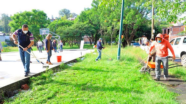 Encabezados por Juan Carlos Barragán Vélez, titular de la Sedesoh, primero estuvieron en las canchas de básquetbol que se ubican frente al campus de la UNAM en la colonia Indeco, ahí con escoba en mano, podadoras y jabón, retiraron maleza, recogieron basura y lavaron el espacio.