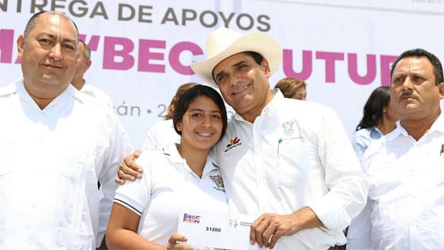 El mandatario estatal entregó apoyos del Programa Beca Futuro donde se beneficia a un total de 208 jóvenes estudiantes de secundaria, bachillerato y universidad con la beca mensual de mil, mil 200 y mil 500, respectivamente.
