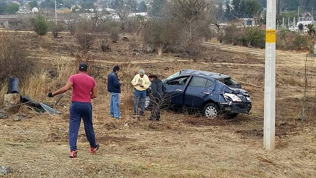 Los otros tres sucesos fueron entre las 09:00 horas y las 10:00 horas. Primero, en el kilómetro 19, un coche Nissan Versa, de color azul marino, con placas de circulación PFP-17-E se salió de la cinta asfáltica, volcó y terminó en un desnivel. Hubo dos ciudadanos lastimados que fueron hospitalizados.