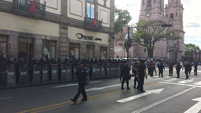 Momentos de tensión se vivieron afuera el recinto del Poder Legislativo, donde los manifestantes bloqueaban la circulación y gritaban consignas por el recorte presupuestal a la Universidad Michoacana de San Nicolás de Hidalgo (UMSNH) de 391 millones de pesos, y hasta donde llegaron elementos antimotines para dialogar con ellos.