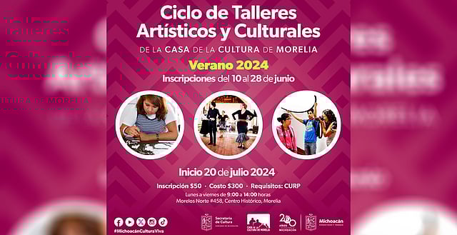 Morelia, Michoacán (MiMorelia.com).- Con 5 actividades especiales dirigidas a personas con discapacidad y primera infancia, la Secretaría de Cultura del Estado (Secum) oferta cerca de 120 talleres artísticos para todas las edades, en el próximo curso de verano de la Casa de la Cultura de Morelia. Las inscripciones darán inicio el próximo lunes 10 de junio.
