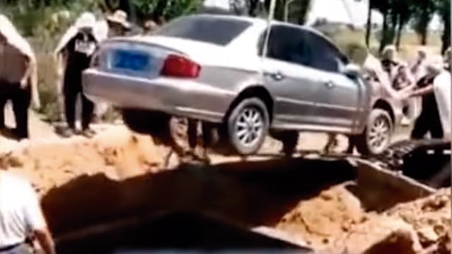 Según medios locales, la fosa fue excavada de tal modo que cupiera el automóvil, y sus muros fueran fortificados con placas de cemento.