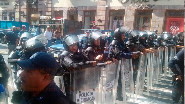 Morelia, Michoacán (MiMorelia.com/Ireri Campos).- Entre golpes y empujones alrededor de 60 trabajadores del sector salud fueron desalojados de la calle Benito Juárez, mientras se manifestaban para exigir el pago del Fondo de Ahorro de los Trabajadores (Femac), mismo que asciende a los 13 millones 500 mil pesos.