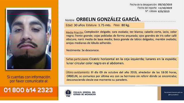 De acuerdo a lo que sabe, Orbelin estableció contacto con su hermano el pasado 9 de octubre a las 18:00 horas, después de eso no se sabe nada de él.