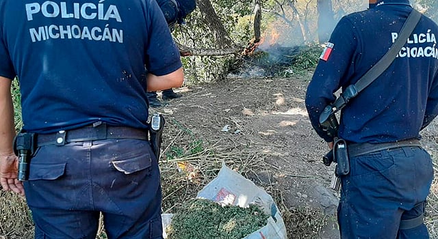 Elementos de la Policía Michoacán efectuaban recorridos sobre una brecha que conduce a la localidad La Cofradía, ubicando en las inmediaciones un predio con más de mil plantas de la citada hierba.