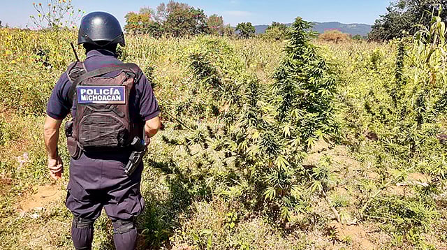 Derivado de un reporte, agentes de la Policía Michoacán y del Ejército Mexicano, ubicaron sobre una brecha que conduce de la localidad de Tarecuato a la comunidad de Cirio, un predio con las plantas de la mencionada droga, por lo que procedieron a inspeccionar el área.