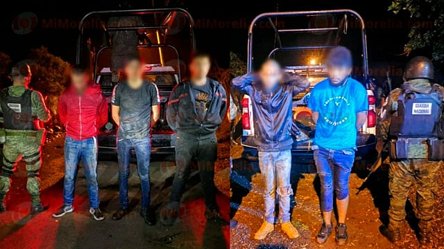 Zamora, Michoacán (MiMorelia.com).- Cinco presuntos integrantes de un cártel jalisciense fueron detenidos por los elementos de la Guardia Nacional. A los sospechosos les aseguraron un arma de fuego, droga, así como dos camionetas y una motocicleta con reporte de robo.