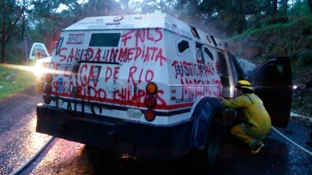 Ese día la Fiscalía Especializada en Atención a Delitos de Alto Impacto, a través de la Unidad Contra el Robo al Transporte, fue informada sobre el robo de una camioneta de valores registrado a la altura de la localidad de Santa Fe de La Laguna, municipio de Quiroga, momento en el que se desarrollaba una manifestación, hecho que dio origen a la carpeta de investigación respectiva.