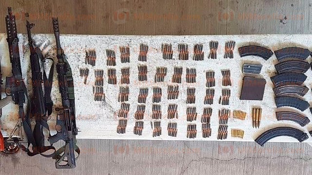 También encontraron dos armas AK-47, una AR-15, además de 15 cargadores y 428 cartuchos útiles. Al revisar los antecedentes de la camioneta, arrojó reporte de robo.