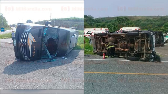 La Unión, Guerrero (MiMorelia.com/RED 113).- Dos muertos y siete heridos dejó como saldo un choque-volcadura entre una combi del servicio público contra una camioneta utilizada para los viajes de turismo, el cual se registró este sábado en la carretera libre a Ixtapa, cerca de la caseta de cobro que está en la localidad de Feliciano en este municipio de La Unión, en los límites con Michoacán.