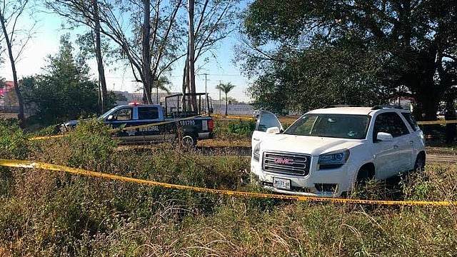 La unidad estaba por una brecha que conduce a Los Metates hacia el fraccionamiento Villas del Parque, y es una camioneta de la marca GMC, color blanco, con placas de circulación JMS-77-66 del estado de Jalisco.