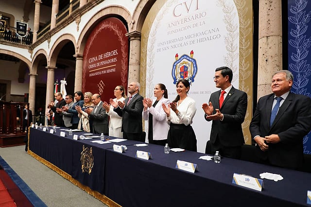 La titular de la SEE, Gabriela Molina Aguilar, destacó la importancia del trabajo por la educación en Michoacán, que realiza la casa nicolaita, dirigida por la rectora Yarabí Ávila González; asimismo, celebró el ejemplo de los más de 300 jóvenes que recibieron el premio Padre de la Patria, por su excelencia en el desempeño académico.