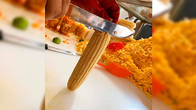 Con su respectivo toque de queso rallado, limón, cebolla, chile verde picado, jugo de naranja, chile en polvo, un toque de vinagre y una pizca de sal, el elote será la nueva atracción en este coctel de frutas.
