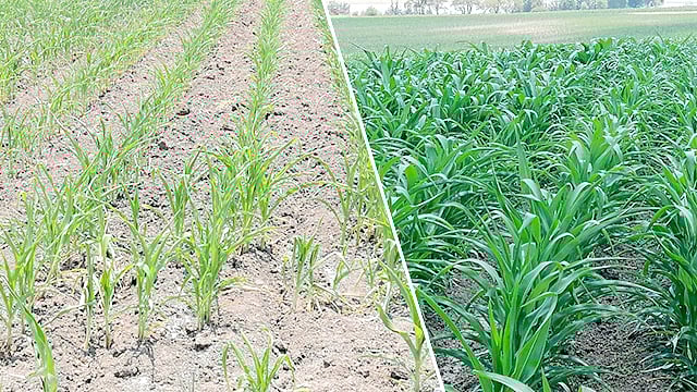Finalmente, Medina niño mostró como ejemplo dos cultivos de maíz, en donde es notorio en la planta el impacto de los insumos del Programa de Agricultura Sustentable.