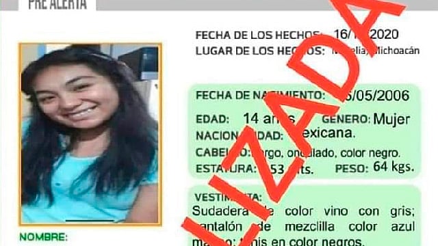 Morelia, Michoacán (MiMorelia.com).- La Fiscalía General del Estado de Michoacán (FGE), localizó a una adolescente de 14 años de edad, que fue reportada como desaparecida el pasado sábado, en esta ciudad.