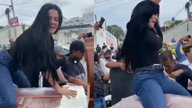 En las imágenes se puede observar a la mujer meneando la cadera al ritmo de una canción sobre el ataúd, mientras llora y lanza un par de carcajadas, además de que besa el féretro en varias ocasiones. A su alrededor algunos sujetos lloran sin consuelo y se abrazan entre ellos.