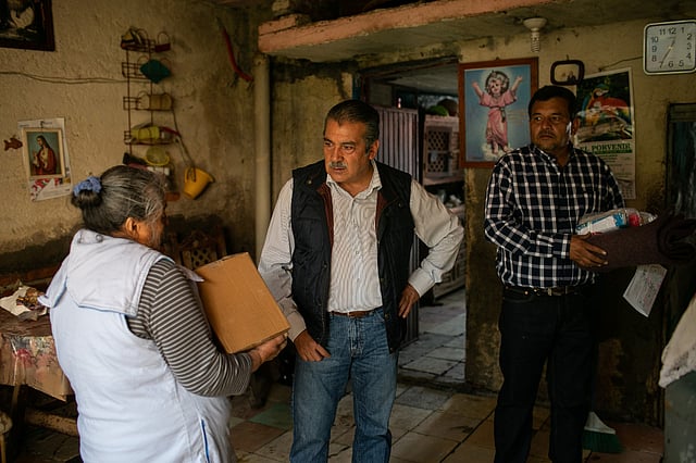 Acompañado por el titular de la Secretaría de Desarrollo Humano y Bienestar Social, Roberto Reyes Cosari, el secretario de Servicios Públicos, Ramón Baltierra, y la titular de la Dirección de Salud, Daniela Durán, el edil capitalino dispersó los apoyos obtenidos del Fondo de Desastres Naturales (Fonden), que contienen kits de limpieza y aseo personal, cobijas, y dotaciones de fruta deshidratada.