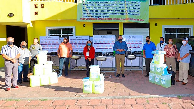 Se trata de proteger a los sectores que realizan actividades esenciales para que cumplan con las medidas sanitarias establecidas porque así "protegemos también a las familias morelianas que adquieren sus alimentos en estos espacios", dijo Juan Carlos Barragán Vélez, titular de la dependencia, al hacer entrega de 5 mil cubrebocas, 300 litros de líquido desinfectante y 4 lavamanos públicos a la Organizaciones Unidas de Morelia A. C., que aglutina a 14 organizaciones con más mil 800 tianguistas en la ciudad.