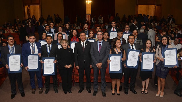 Por su parte, Atzimba Díaz Pulido, doctora en Negocios Internacionales, adscrita al área de Ciencias Económicas y Administrativas, y encargada del discurso a nombre de los egresados, exhortó a sus compañeros galardonados a poner en práctica los valores éticos y a promover la excelencia, tanto en su desempeño profesional como en su vida personal. Agradeció el reconocimiento y se comprometió a mantener el prestigio de la Casa de Hidalgo.