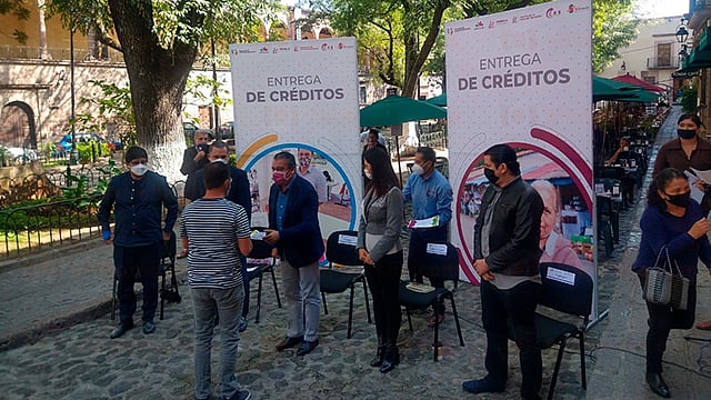 Morelia, Michoacán (MiMorelia.com).- Como parte del Plan Emergente Michoacán por el Covid-19, se entregaron simbólicamente 120 créditos que suman un millón cien mil pesos, distribuidos en pequeños y medianos negocios de la capital michoacana.