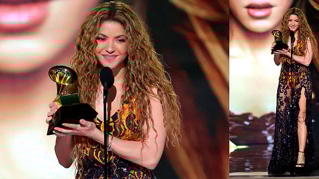 Al recibir dicho reconocimiento por su música, Shakira lució un vestido con el que representó a la mariposa monarca, y dedicó su Gammy a los migrantes indocumentados en Estados Unidos, además de agradecerle a su familia e hijos que se encontraban presentes.