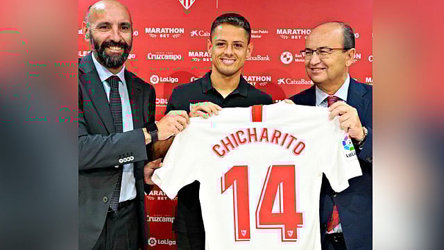 El delantero mexicano procedente del West Ham United inglés firmó contrato por las próximas tres temporadas (hasta el 2022) con el club sevillista.