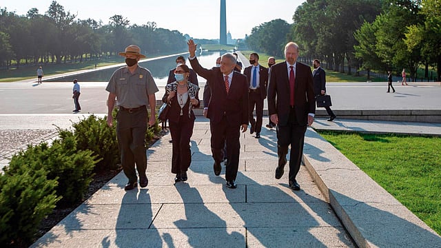 Estados Unidos (Rasainforma.com).- El presidente Andrés Manuel López Obrador ha comenzado su itinerario de su gira por Estados Unidos, en donde a primeras horas de este miércoles ha colocado varias ofrendas florales en monumento a Lincoln y Benito Juárez.